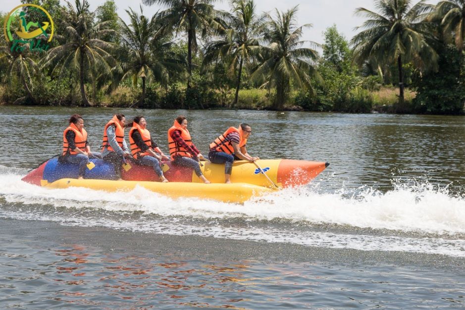 Ở đây, các bạn có thể picnic, vui chơi ăn uống thỏa thích với đa dạng loại hình vui chơi như trò trơi liên hoàn trên nước, tour tham quan song nước, thuyền kayak, … và còn nhiều điều hấp dẫn khác đón chờ bạn tại Khu du lịch Tre Việt.