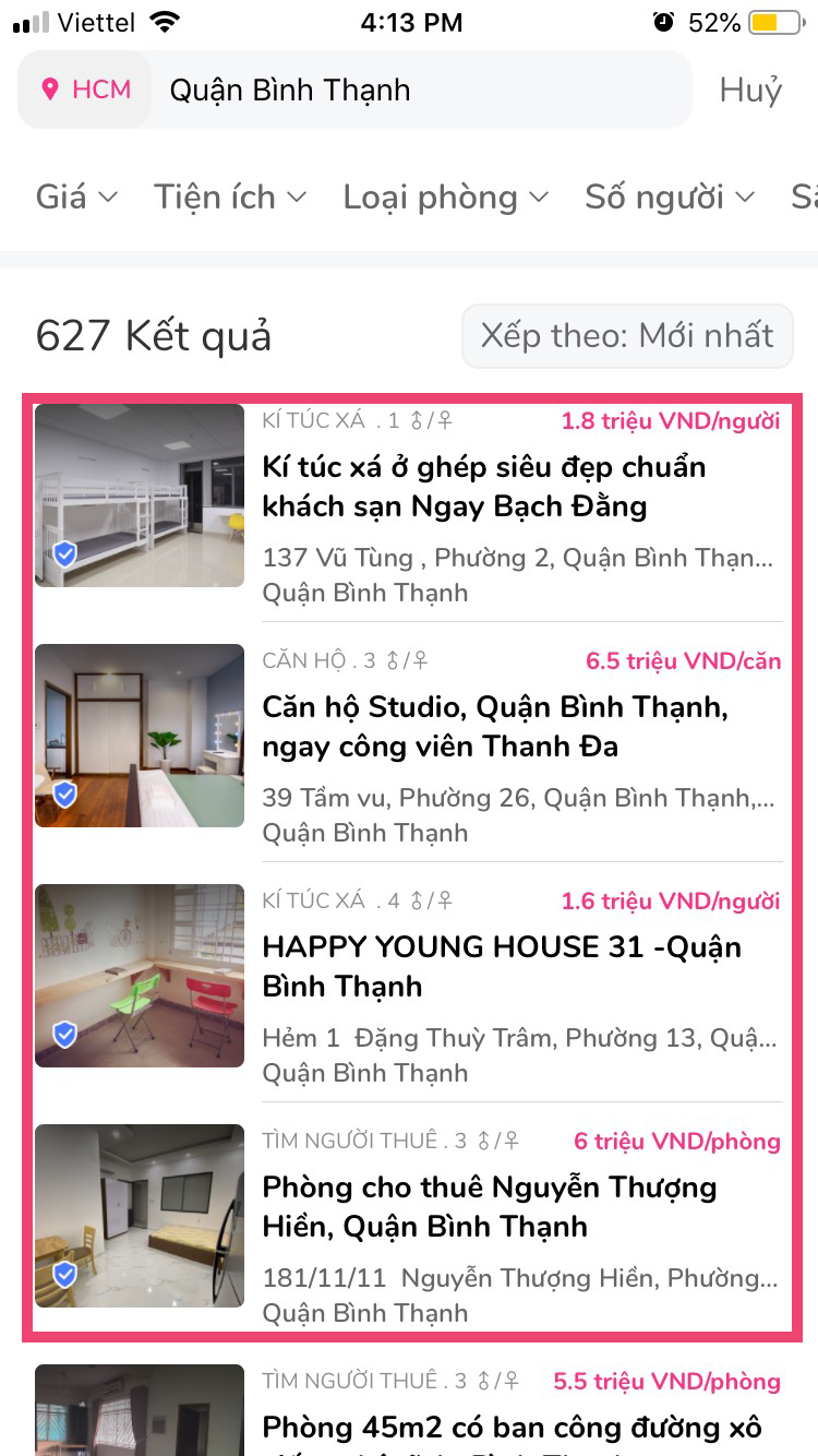 a. Vị trí trang chủ của Ohana: Ở vị trí này, bài đăng của chủ nhà sẽ đươc xuất hiện từ 6h – 8h/ngày trong suốt thời gian quảng cáo. Thời gian xuất hiện sẽ được Ohana sắp xếp dựa trên lượng khách tìm kiếm trong ứng dụng phù hợp với giá cả và khu vực tìm kiếm của phòng và luôn đảm bảo bài đăng sẽ được ở vị trí trang chủ từ 6h – 8h/ngày.