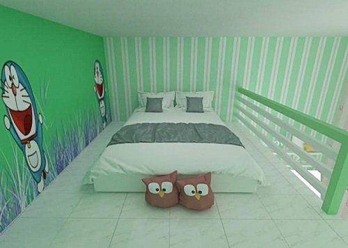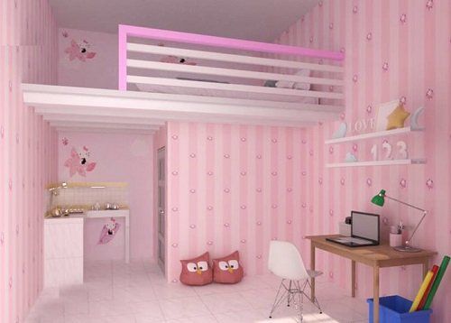 Đối với những cô nàng mơ mộng, bánh bèo thì có thể lựa chọn phong cách thiết kế theo tông màu nhất định: màu hồng, màu cam, xanh lá…phù hợp với sở thích của mình. Nội thất chỉ cần đơn giản như bàn ghế học tập, kệ sách, gối tựa. Gác lửng thích hợp để làm phòng ngủ tích hợp với kệ đồ xung quanh.