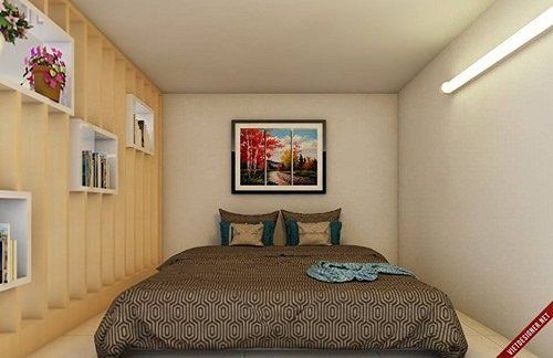 Phòng ngủ được bày trí trên gác lửng, có thể bố trí một số nội thất không quá to như tủ đầu giường, ghế đặt lọ hoa, tranh ảnh hoặc tivi thư giản, kê sách hoặc kệ để trang trí cũng sẽ góp phần tạo cho bạn một không gian thư giản tuyệt vời. Tầng trệt là không gian dành cho bếp, vệ sinh và phòng khách, bạn có thể tinh tế để một chiếc bàn gỗ nhỏ gọn vừa là bàn ăn, vừa là nơi học tập làm việc hoặc tiếp đãi bạn bè.