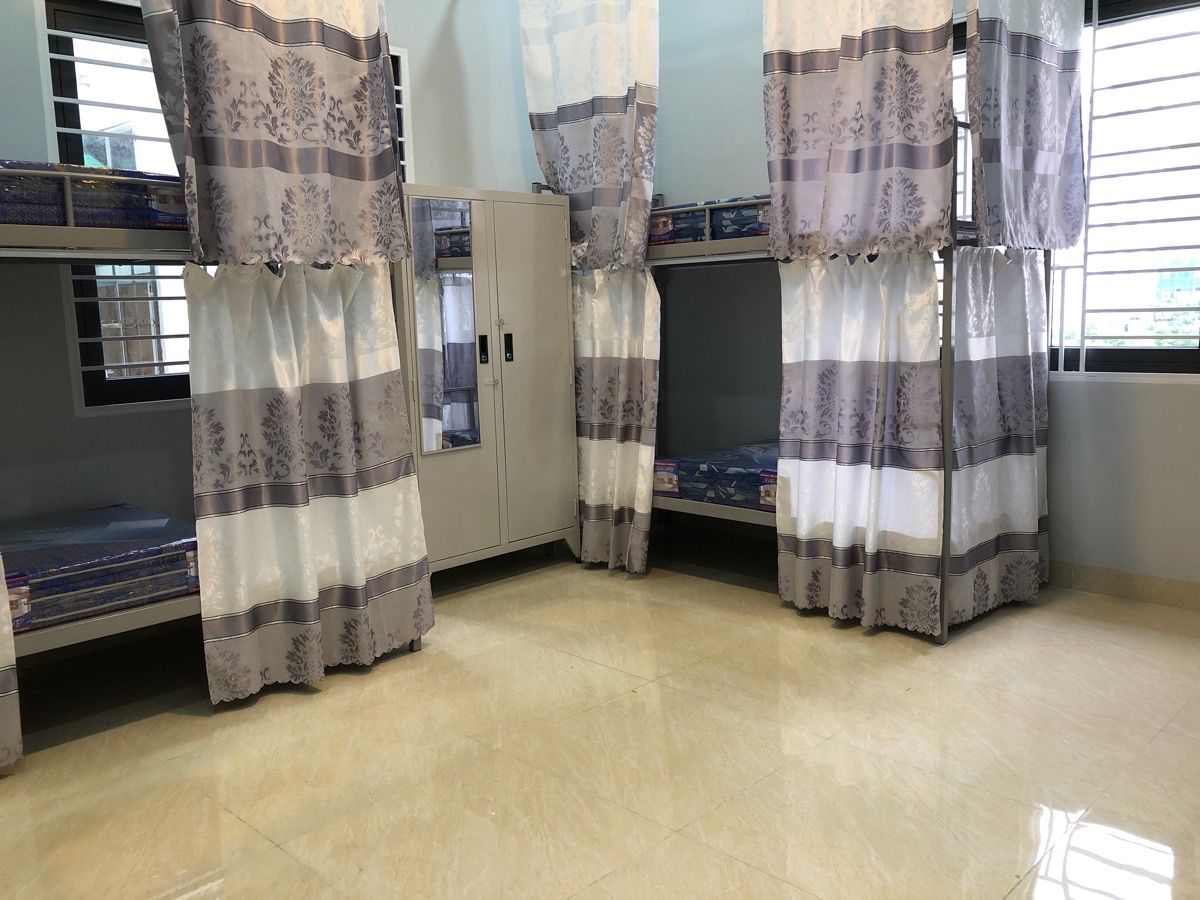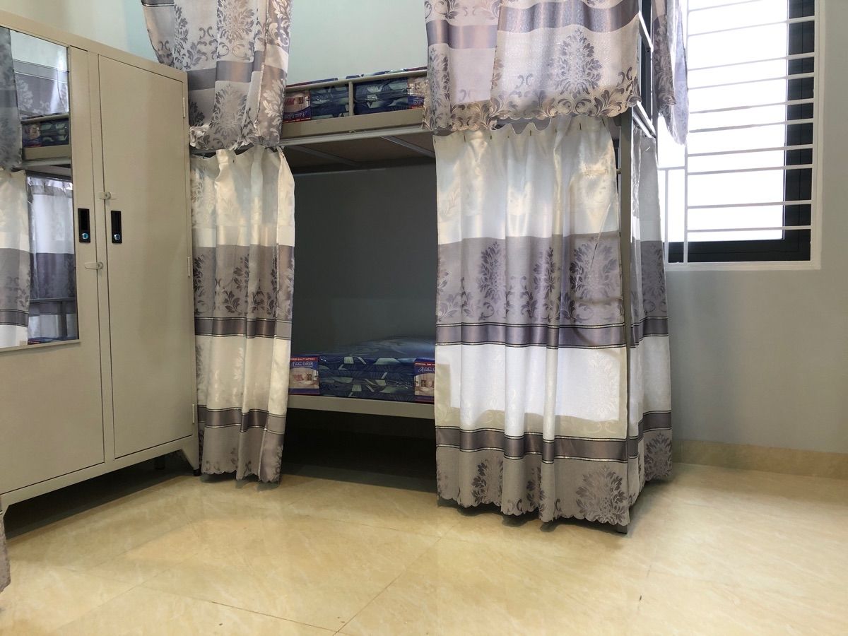 - Mỗi phòng đều trang bị: Máy lạnh, đèn, quạt, ổ điện, móc treo đồ, tủ locker cho từng bạn, WC riêng mỗi phòng