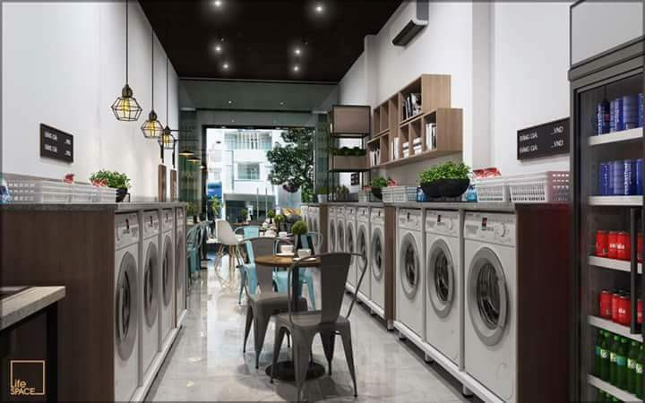 Các cửa tiệm cho thuê máy tự giặt đều được thiết kế thông thoáng