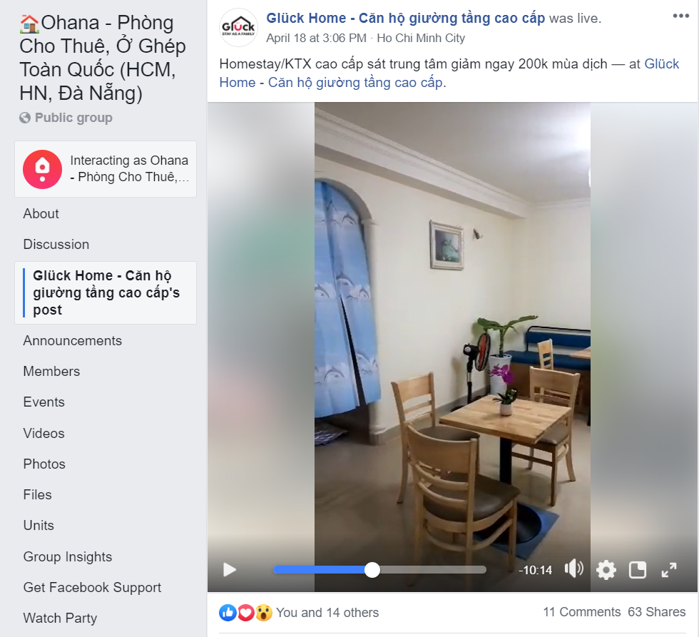 Ngày 18/4 vừa qua, Ohana đã đồng hành cùng 4 chủ nhà để tổ chức thành công buổi livestream xem phòng tại nhà cùng Ohana dành cho các bạn trẻ đi tìm kiếm phòng trọ có thể xem phòng ngay tại nhà. Buổi livestream được tổ chức trên cộng đồng facebook của Ohana: 🏠Ohana - Phòng Cho Thuê, Ở Ghép Toàn Quốc.