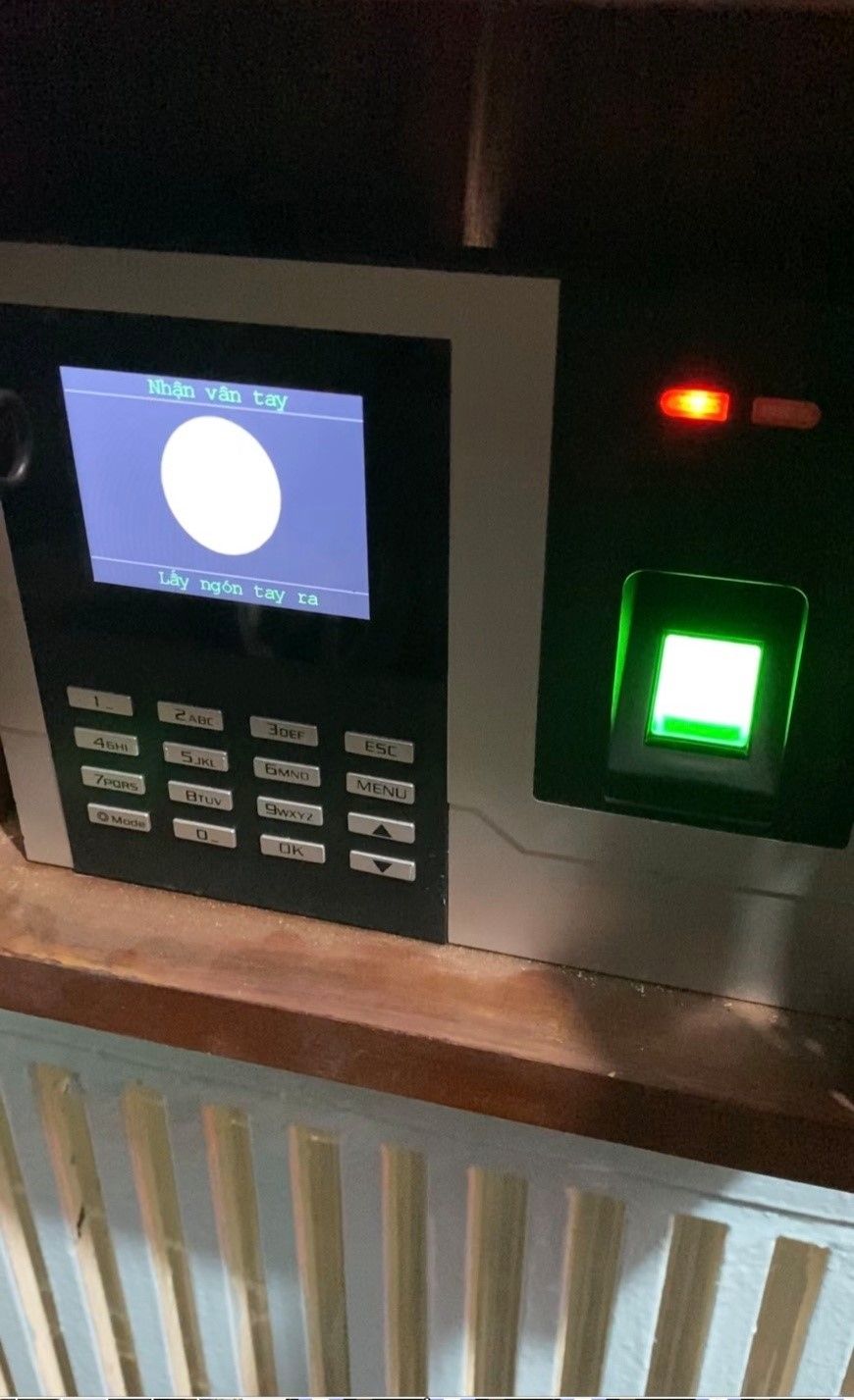 Để bảo vệ cho ngôi nhà, chúng tôi không sử dụng hệ thống chìa khóa + ổ khóa thông thường, thay vào đó là Khóa Vân tay. Bạn có tin là nếu để quên hay đánh rơi “não – chìa khóa” ở đâu, bạn sẽ không thể nào vào nhà được, nhưng chắc “dấu vân tay” thì không thể nào để “não cá vàng” đến nỗi không vào được nhà như thế chứ. Bằng cách “ịn vân tay” của mình vào ô “nhận vân tay”, bạn sẽ có thể vào nhà mà không cần lạch cạch chùm chìa khóa nặng nề trên tay nữa. Và đây là nó “Khóa Vân tay”