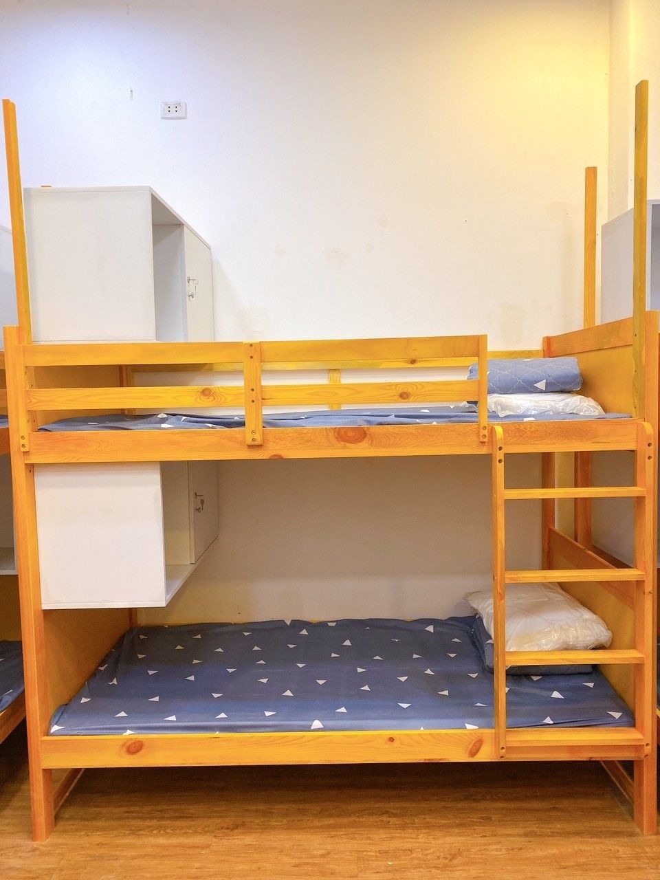 Đội ngũ thiết kế và sáng lập Ký túc xá Future House đã rất trăn trở suy nghĩ về vấn đề trên. Chúng tôi đã đi tìm câu trả lời và tìm ra được giải pháp là dùng loại giường gỗ (gỗ gì) với kích thước rộng hơn, vững chắc hơn, tốt hơn, không có mối mọt. Màu sơn bắt mắt, không gây cảm giác khó chịu. Có rèm kèm theo mỗi giường, để mỗi khi cần, bạn chỉ cần nhẹ tay kéo rèm lại, nó sẽ tạo ra cho bạn sự riêng tư. Cùng với rèm, thì mỗi giường sẽ được trang bị thêm tủ cá nhân đặt trên giường, tạo được sự tiện lơi, an toàn khi để đồ cá nhân trong tủ.....