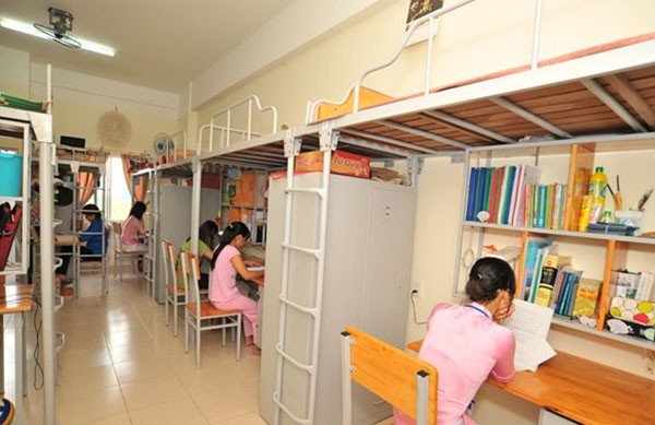 Nếu bốn người ở một phòng 12m2 sẽ rất chật chội nhưng do thời gian học và làm việc lệch nhau nên thường chỉ tối đa có hai người ở phòng cùng một lúc nên vấn đề chật chội đã được giải quyết.