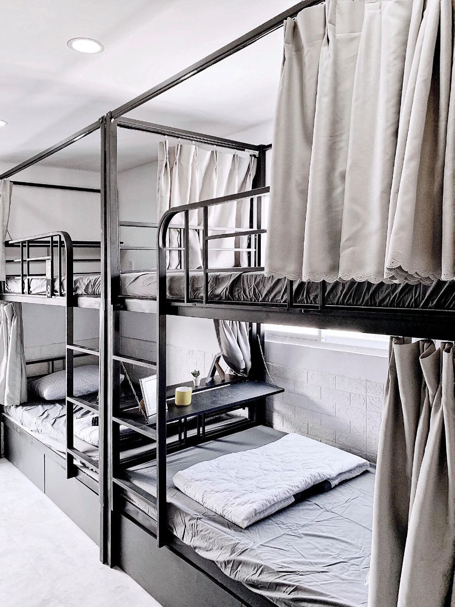 Không gian giường ngủ của Glück được thiết kế với rèm các bên nhằm giúp tạo thêm không gian riêng tư cho các bạn, hơn thế nữa, mỗi khu còn có trang bị ổ cắm điện giúp các bạn dễ dàng sinh hoạt. Ngoài ra tủ của Glück còn được thiết kế với diện tích lớn để các bạn có thể dễ dàng để dụng cụ cá nhân.