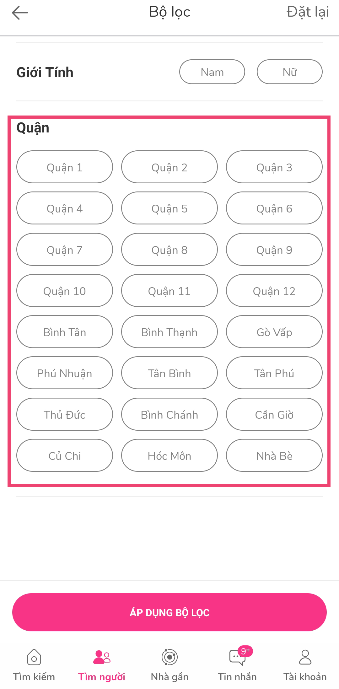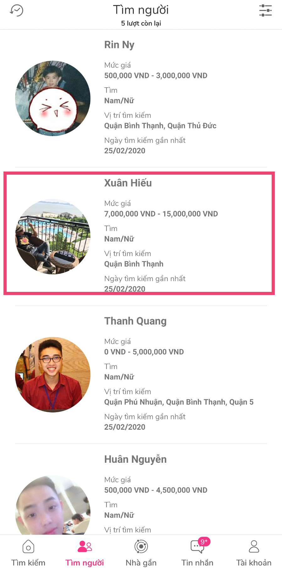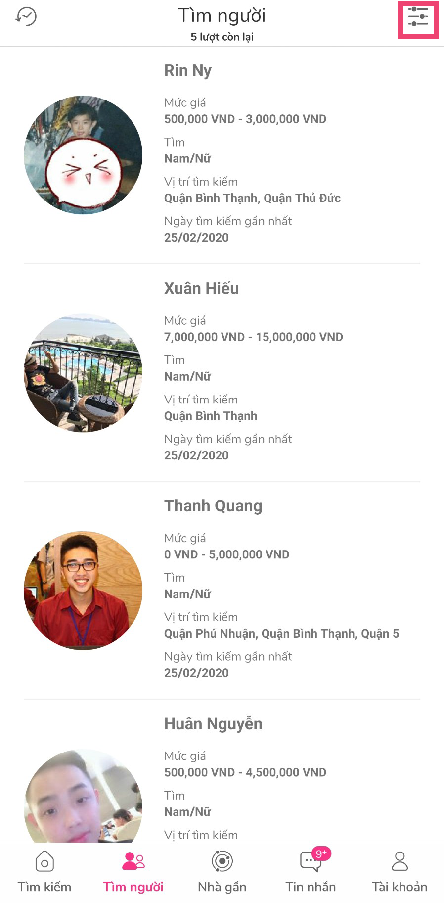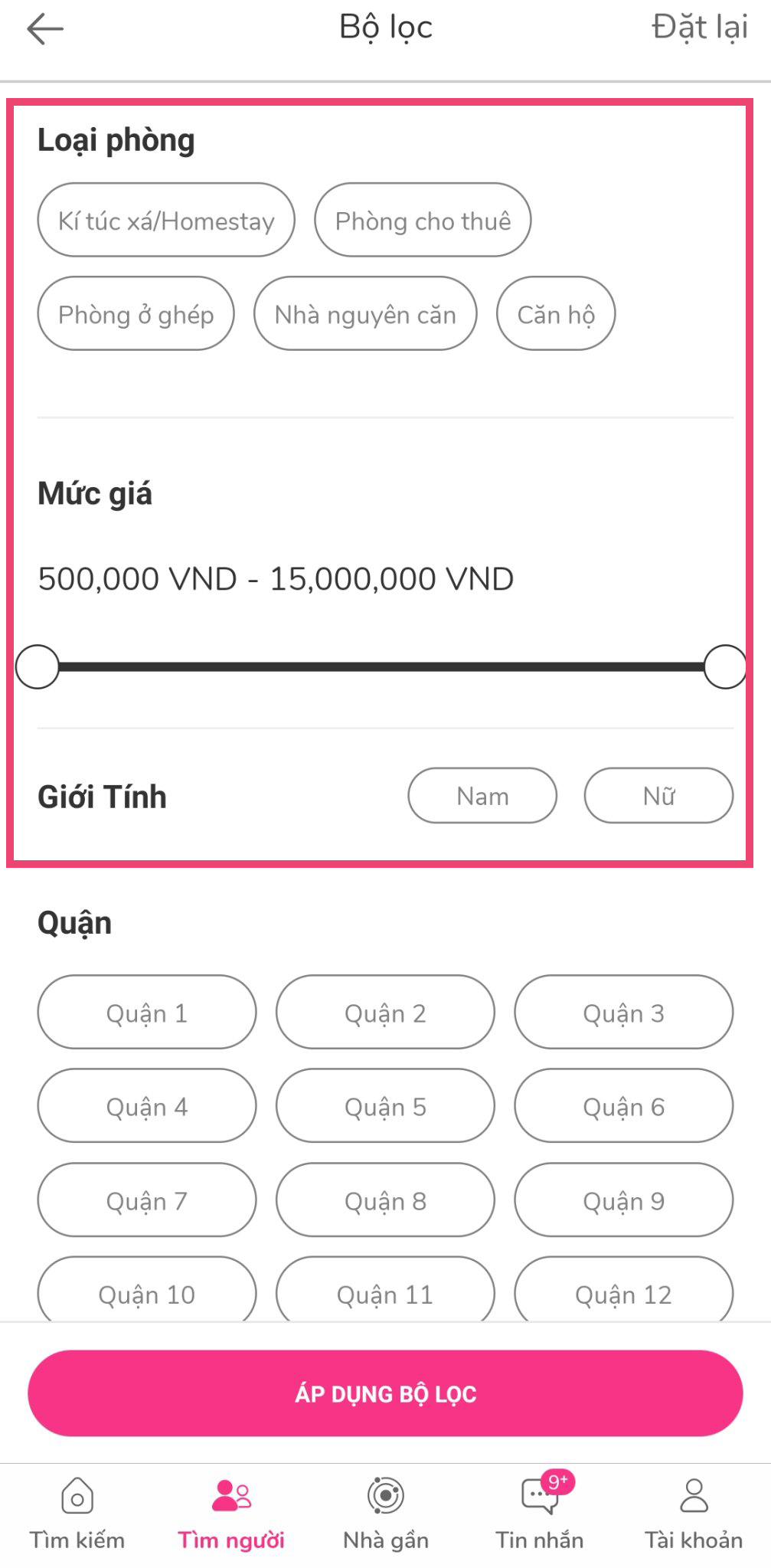 Bước 2: Sử dụng bộ lọc để tìm kiếm người thuê phòng phù hợp